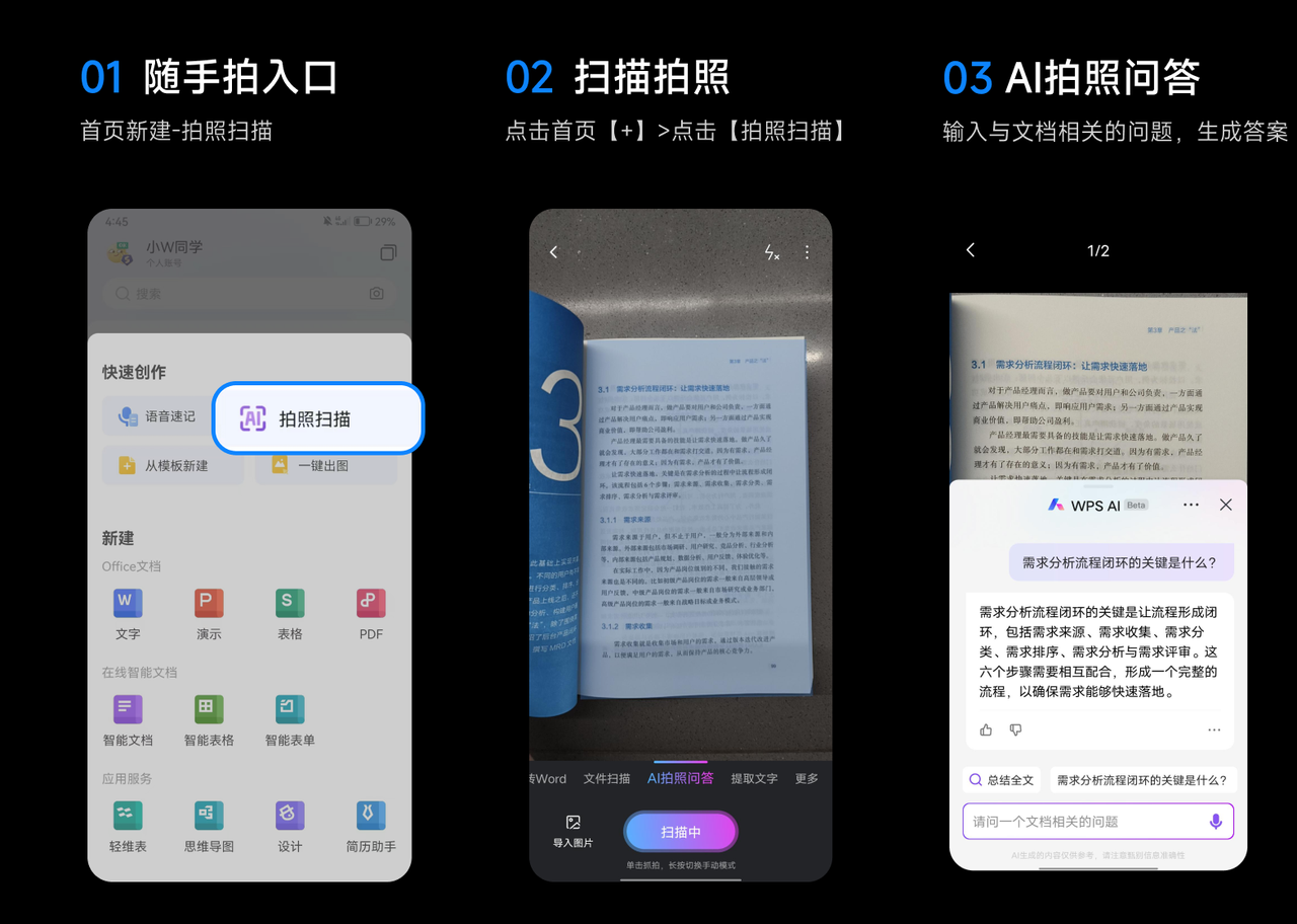 例如:拍摄文本内容,可以向 WPS AI文章要带你信息。遇到陌生词汇,也可以直接向 WPS AI 提问。